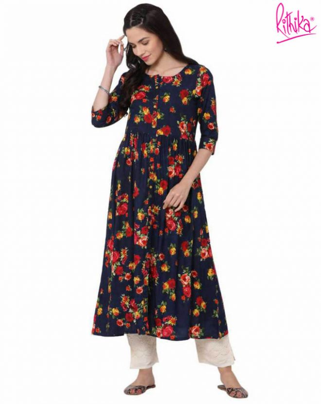 NAVY BLUE A LINE KURTI