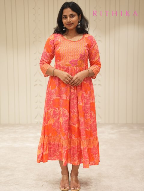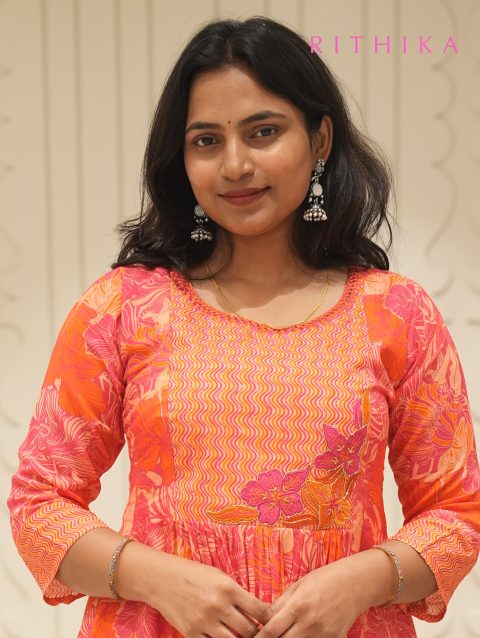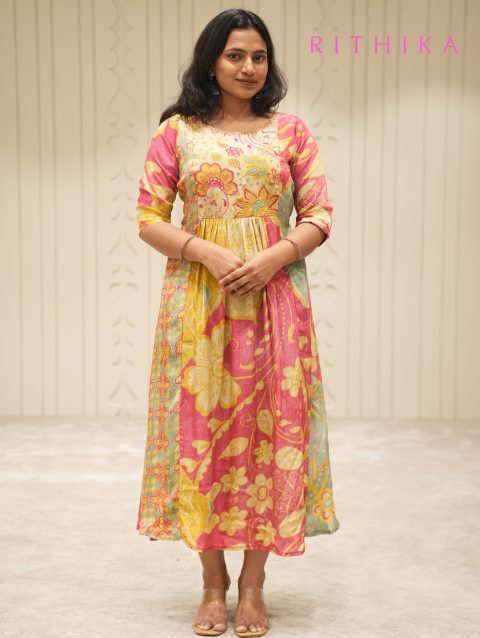 PINK N RED A LINE KURTI